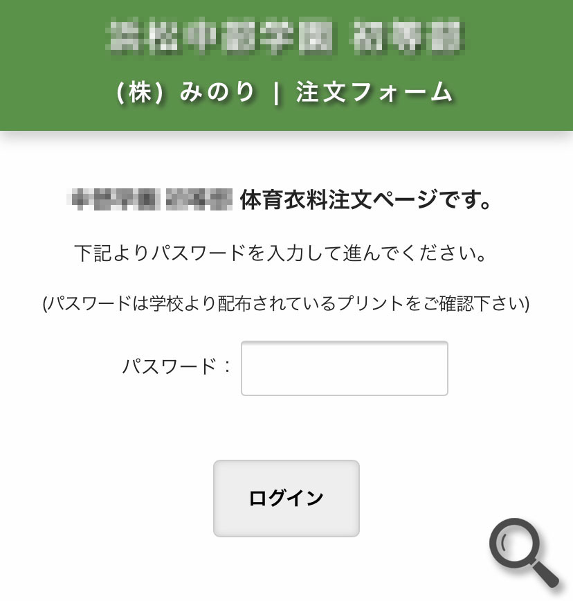 1 : 学校より配布されているプリントに記されているパスワードを入力してログインボタンを押してください。